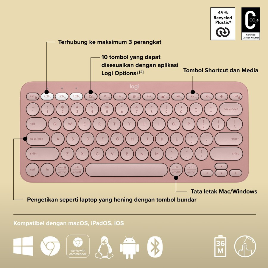 Logitech Pebble Keys2 K380s Keyboard Wireless Bluetooth MultiPerangkat