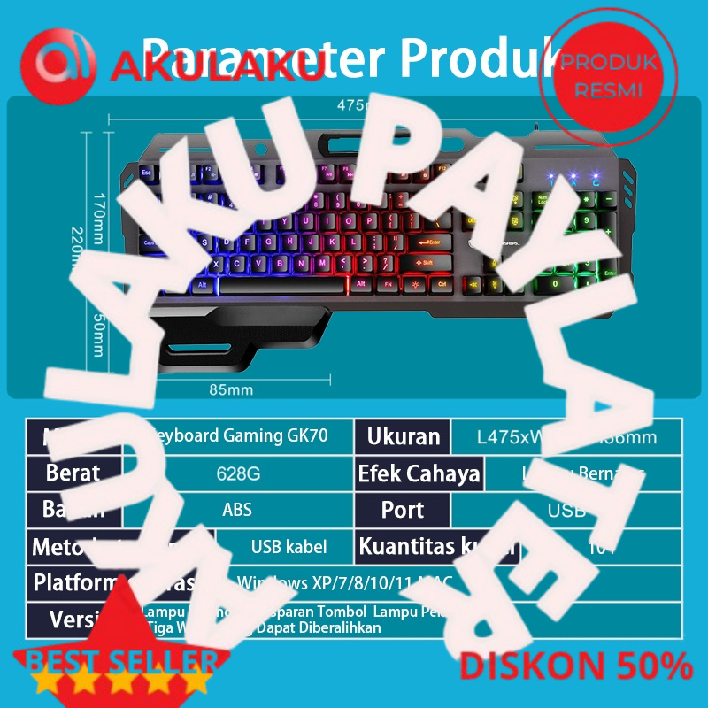 Keyboard Gaming Mekanik GK70 – RGB Backlight, Tahan Air, 104 Keys untuk PC, Laptop & Esports