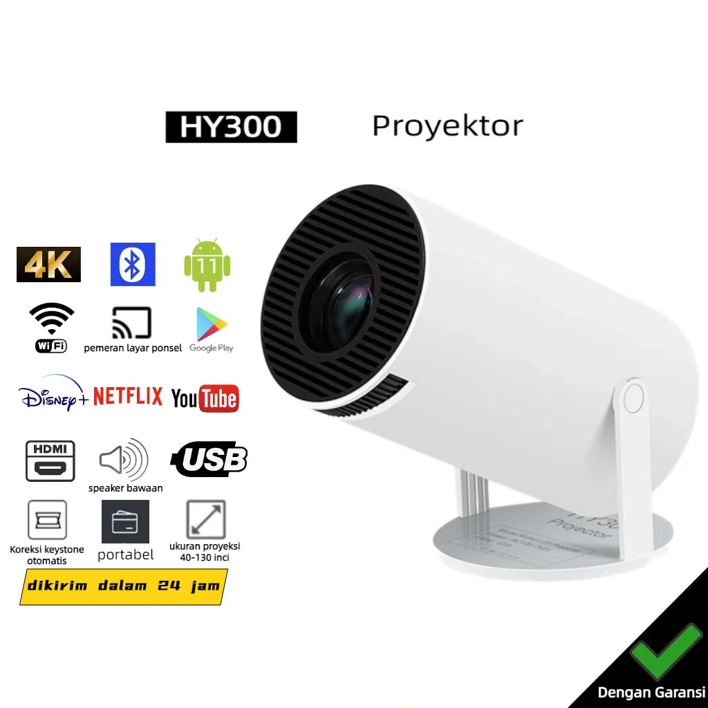 Proyektor Android 11.0 Bluetooth Proyektor 2.4+5G Wifi 6 Portabel Mini hy300 epson eb x500 layar tancap smoon xgody hp