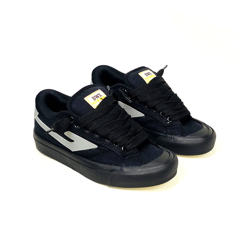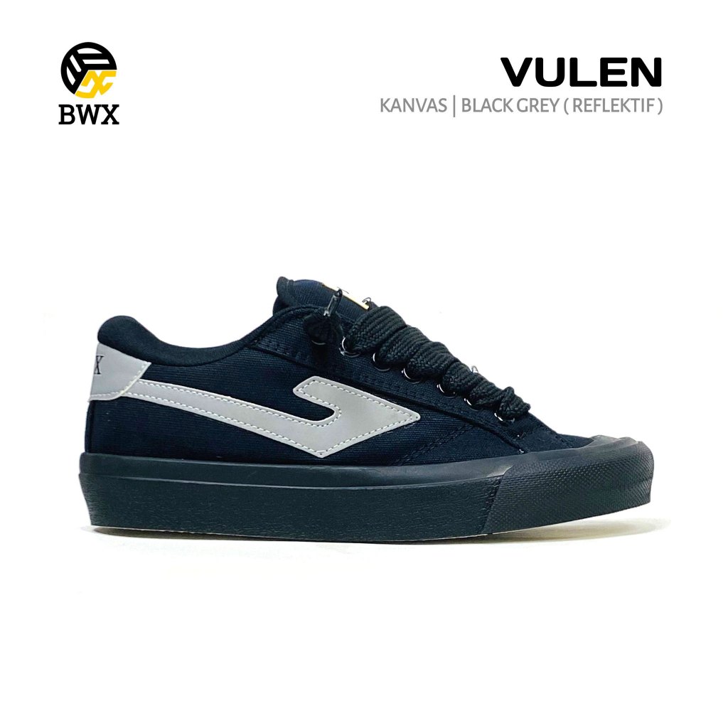 BWX - Sepatu Vulen Black Grey Reflektive Nyala Sneakers Casual Pria Wanita Gemuk Unisex 37 - 45