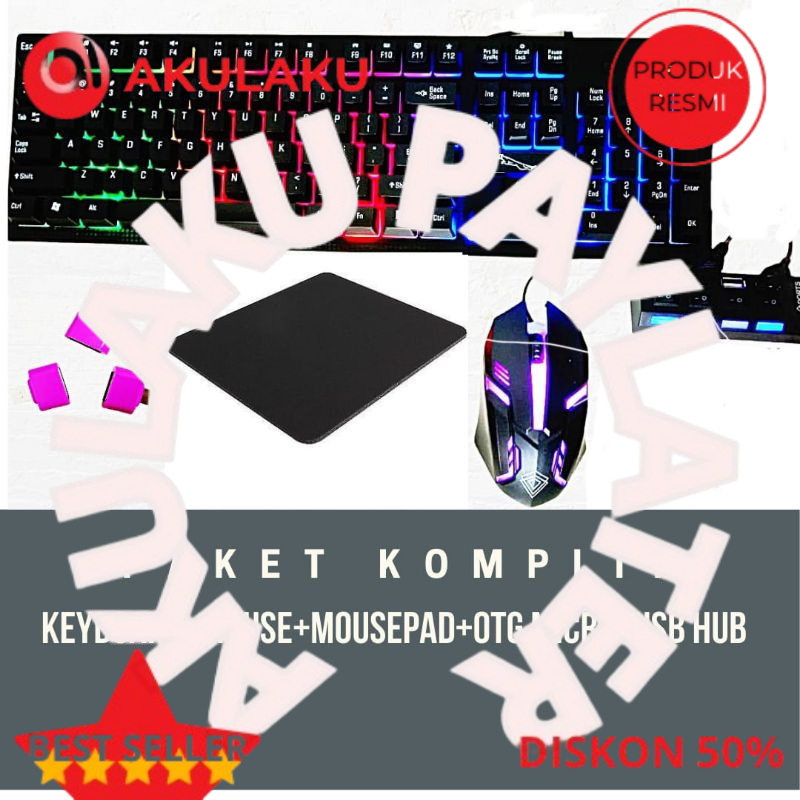 Keyboard Gaming Paket Komplit Koneksi ke HP Bisa dipakai di HP