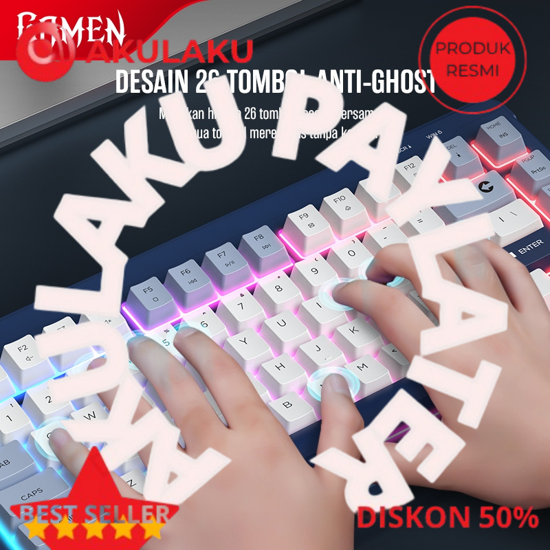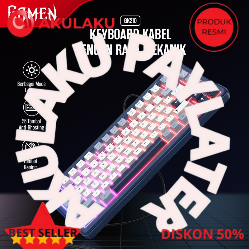 GAMEN Keyboard Gaming Mechanical Silent Click Keycaps PBT Dual Color RGB Light GK210 Original - Garansi 1 Tahun
