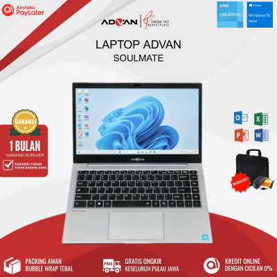 LAPTOP ADVAN SOULMATE 14"INCH SLIM 4GB SSD 128GB SILVER LAPTOP SECOND MULUS LIKENEW BERGARANSI