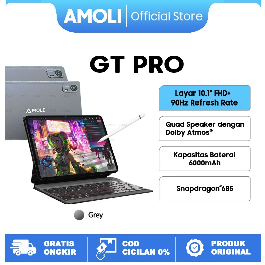Tablet AMOLI GT Pro 5G LTE PC Layar 10.1 HD IPS RAM 6+128GB ROM Dual Sim Card + WiFi Quad-Core ( Free Keyboard + Mouse