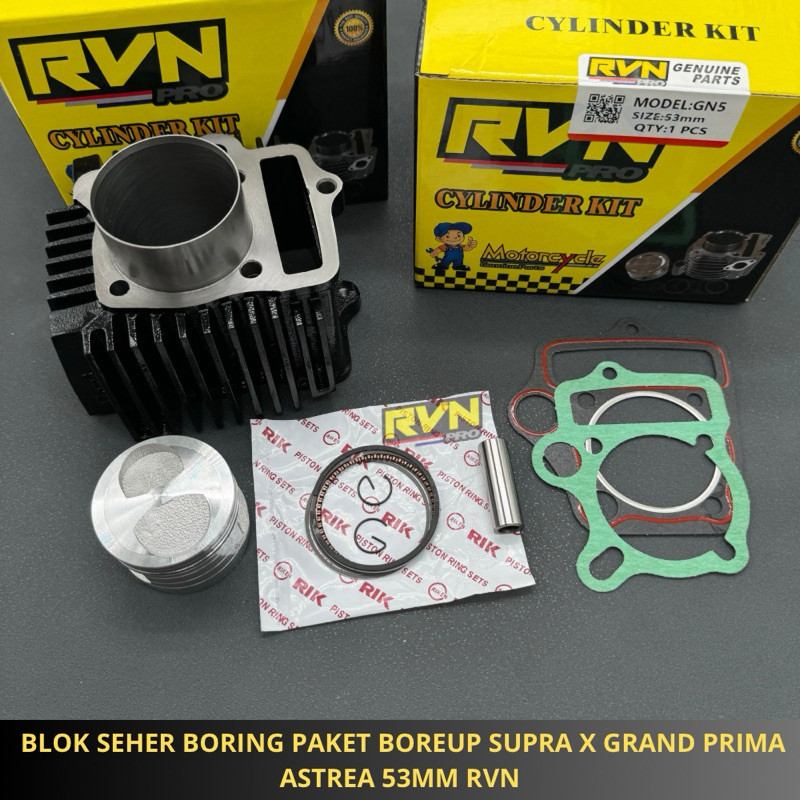 [Mall] RVN CYLINDER BLOK SEHER BORING KOMPLIT BORE UP GN5 SUPRA X WIN GRAND PRIMA ASTREA 53MM 53 MM BLOCK SEHER BORUP FR