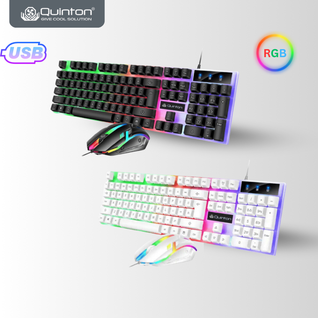 Quinton Keyboard combo mouse GAMING RGB USB wired full size 104Keys for desktop PC Laptop windows