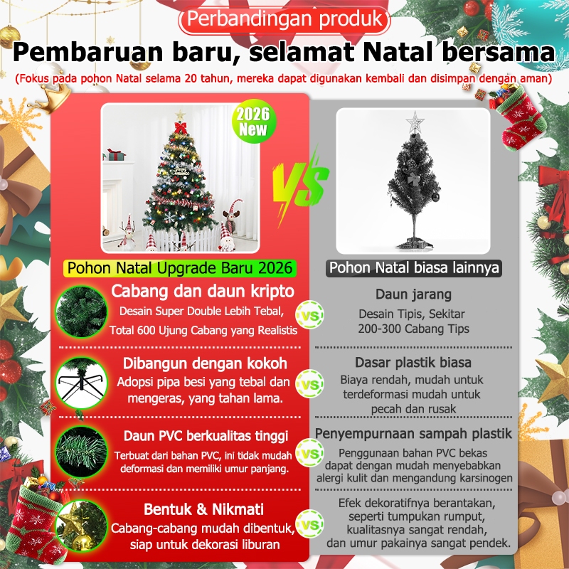 DUBOT Pohon Natal 1.2M 1.5M 1.8M 2.1M Christmas Tree Besar Pohon Terang Cemara Dekorasi Hiasan Perayaan Hari Natal