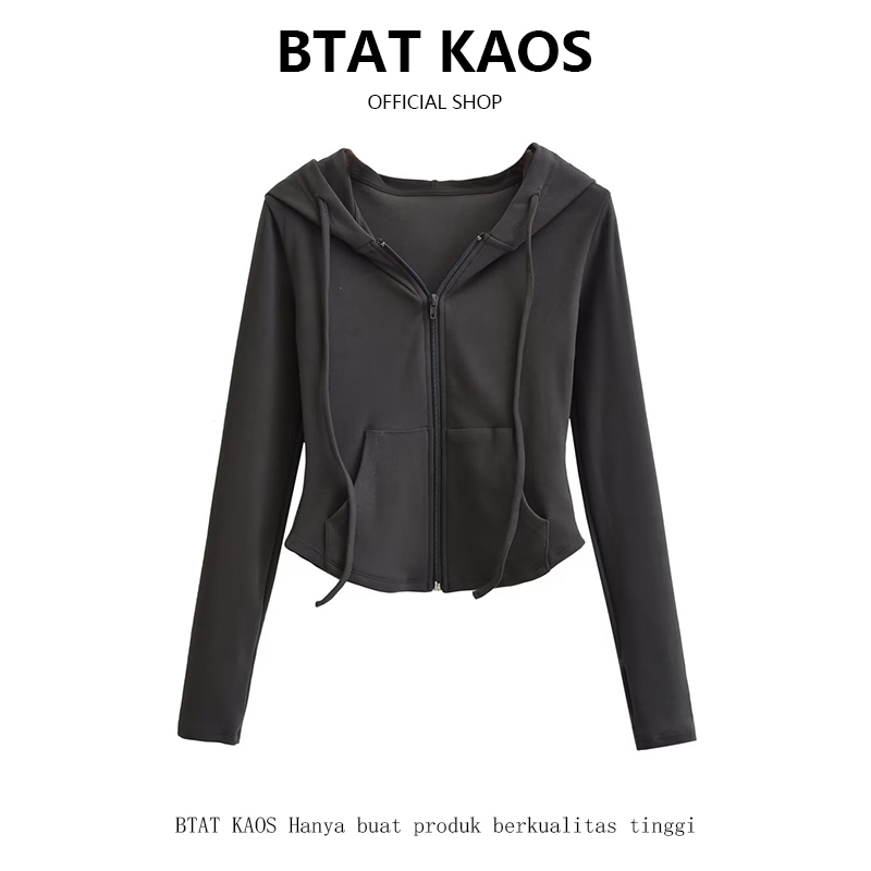 [Star] BTAT Premium Wanita Polos Crop Zipper Hoodie Jacket Cokelat Wanita Korean Style