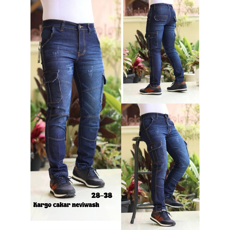 TERLARIS Celana Cargo Jeans Slimfit Pria Original – Denim Streatch Melar Paling Hits Terpopuler