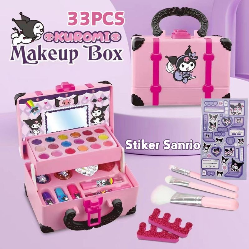 [Star] [] 33PCS Girls Makeup Toys / Kuromi make up asli anak Set / Lipstik Eye Shadow Safety Kit Mainan / alat make up a