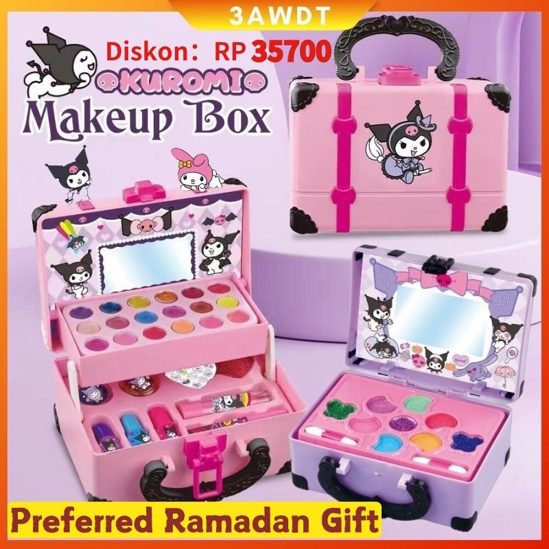 [Star] [](kotak gratis)Girls Makeup Toys Kosmetik Kotak Princess Girl Set Lipstik Eye Shadow mainan Kuromi make up anak