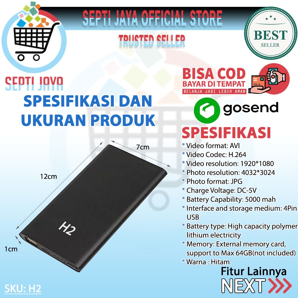 Septijaya Kamera Mini Powerbank H2 HD 1080P 5000MAH Hidden Camera Spy Pengintai Teresembunyi PWR-H2