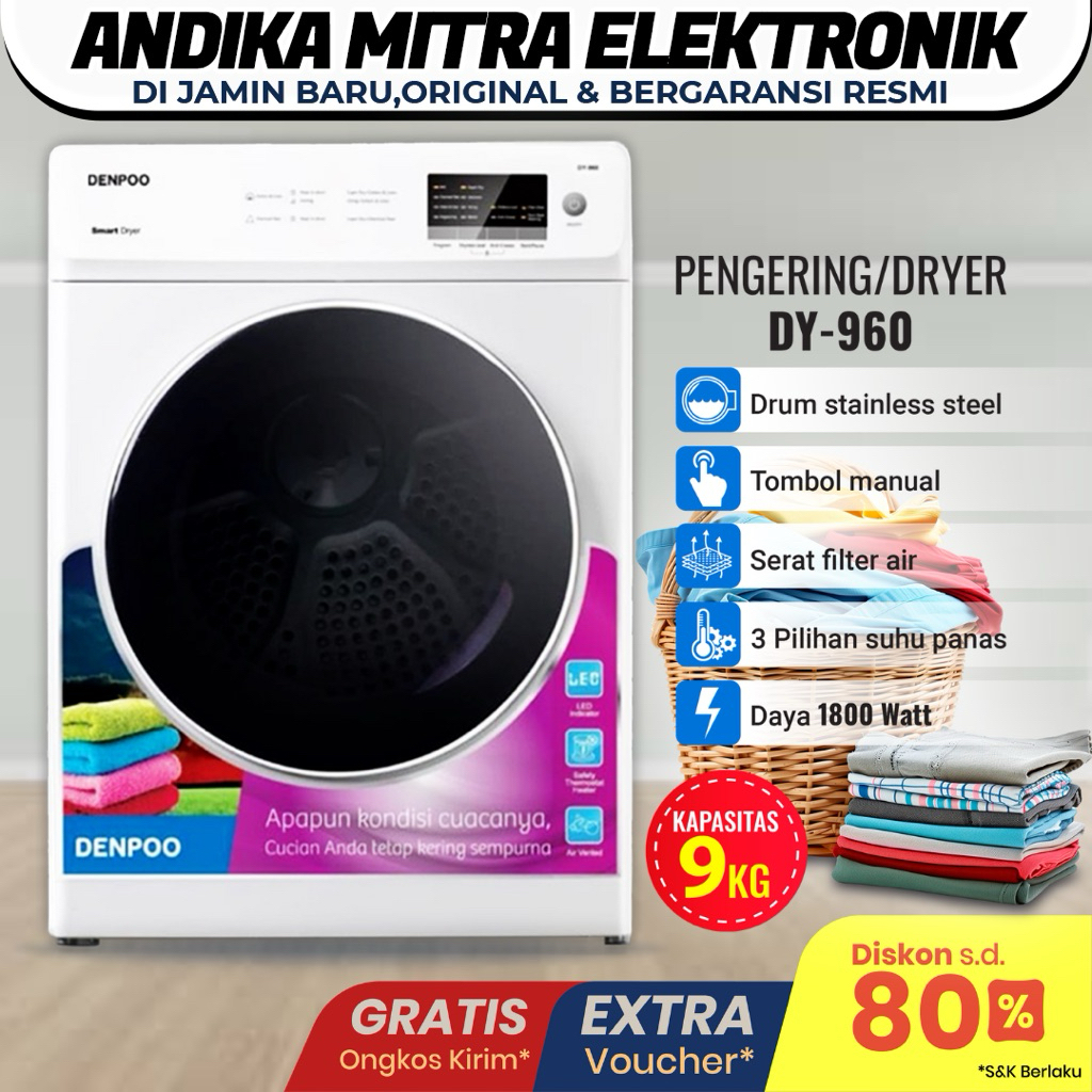 Dryer DY 960 Mesin Pengering Baju Kapasitas 9 Kg Super Hemat Listrik Laundry