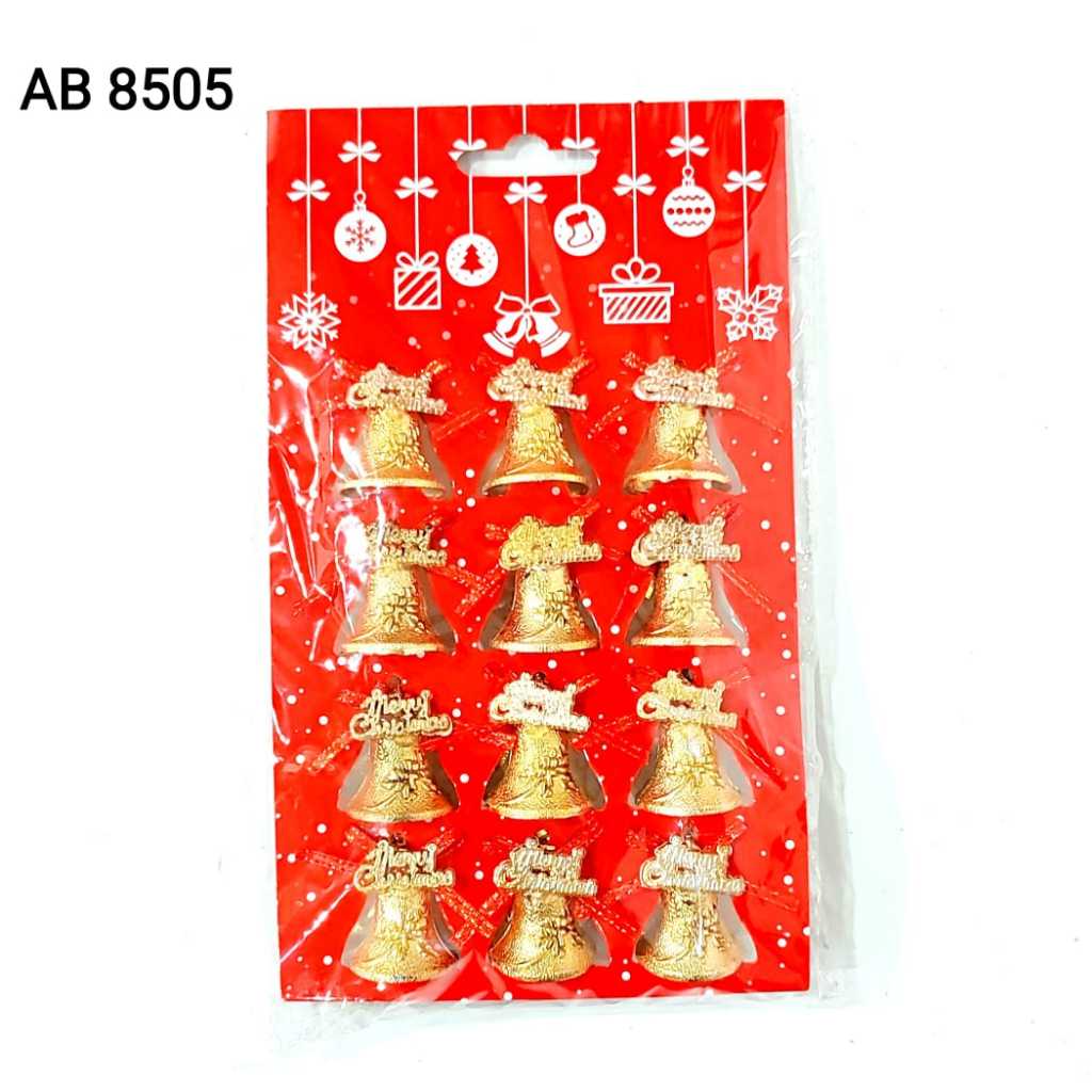 Dekorasi Lonceng Natal Isi 12 Bell Lonceng Pita Merry Christmas Hiasan Parcel Kado Natal Murah Lonceng Gold Merah Dekor