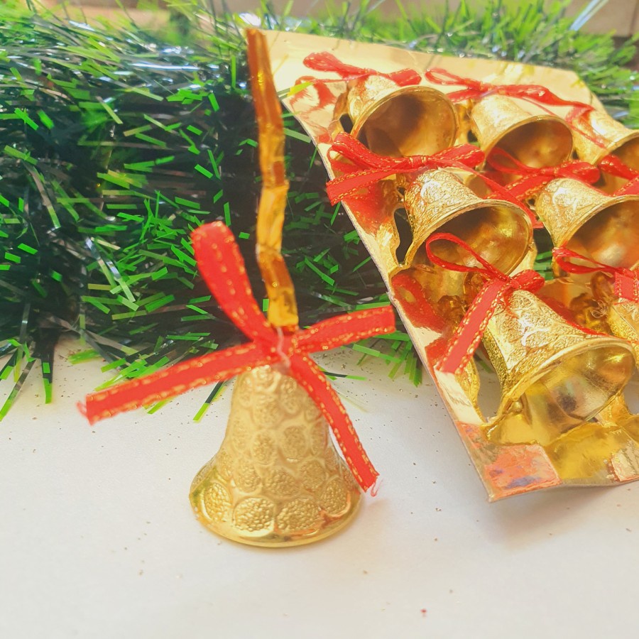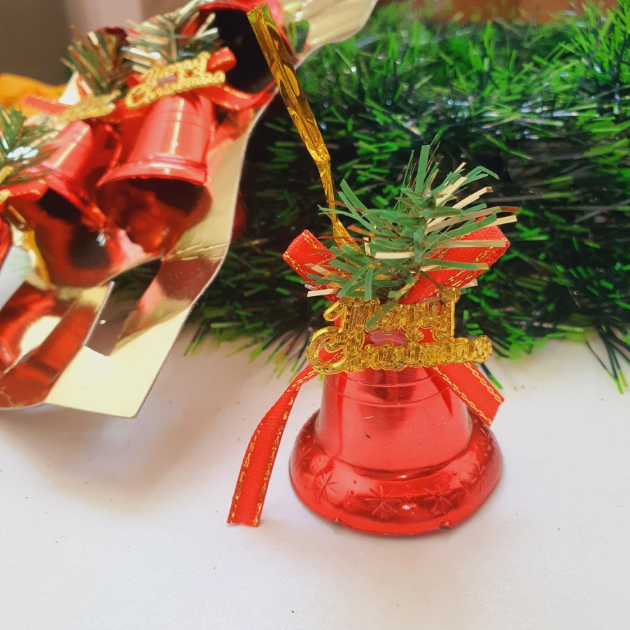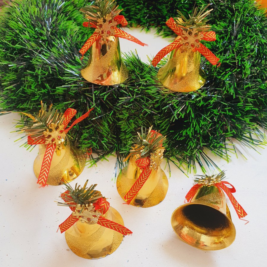 Isi 6 Lonceng Natal Besar Gold Merah Dekorasi Lonceng Emas Polos Hiasan Natal Murah Christmas Bell