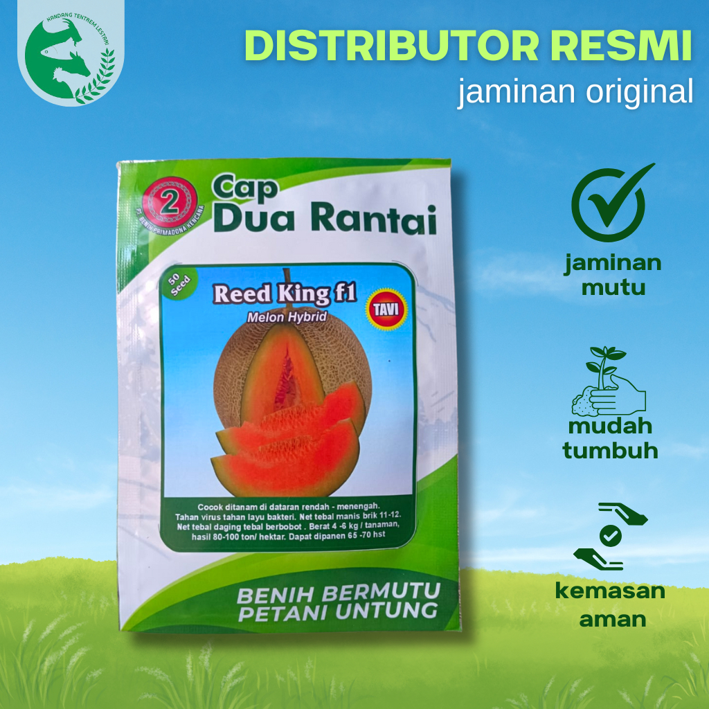 Benih Melon Hibrida Reed King F1 50 Seed Dua Rantai Daging Orange Manis Madu Berat 4-6 Kg