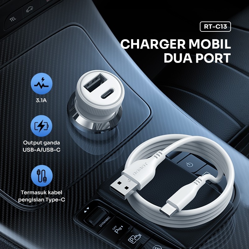ROBOT Car Charger Cable Adaptor Mobil 3.1A With Type C RT-C13 Original - Garansi Resmi 1 Tahun