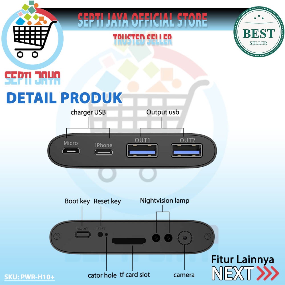 Spy Kamera Powerbank H10+ WIFI Wireless 10000MAH Hidden Spycam Camcorder Camera Full HD 1080P Spy Cam Original Berkualit