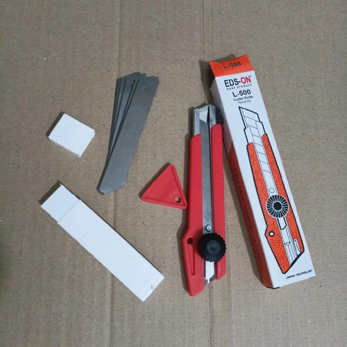 READY! PAKET PISAU CUTTER ( CUTTER BESAR + ISI 5PCS ) EDS-ON L-500 - PISAU CUTTER SAJA