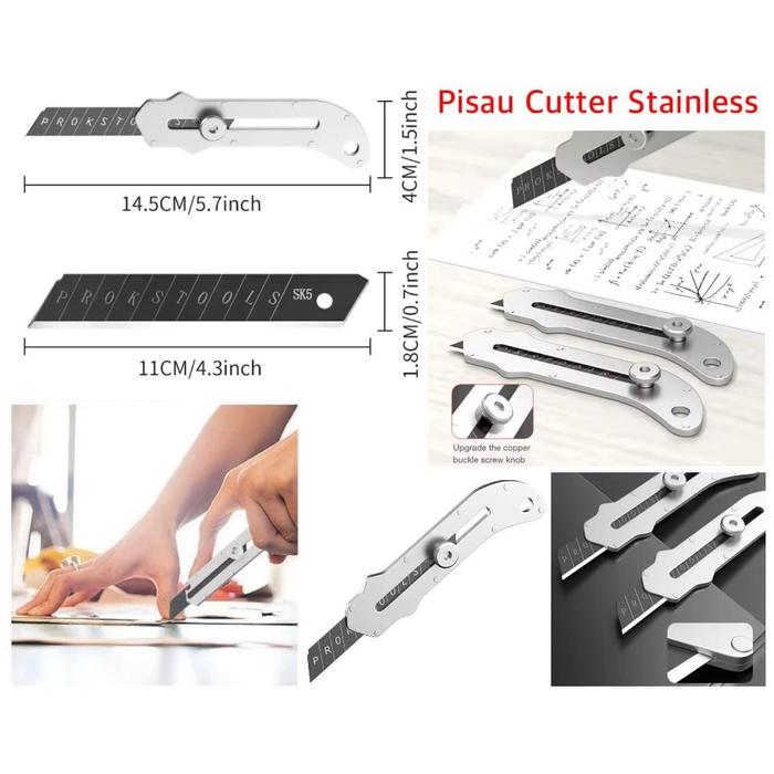 READY! PISAU CUTTER STAINLESS BESI 9IN1 CUTTER STAINLESS PEMOTONG KERTAS TAJAM ANTI KARAT - CUTTER POLOS