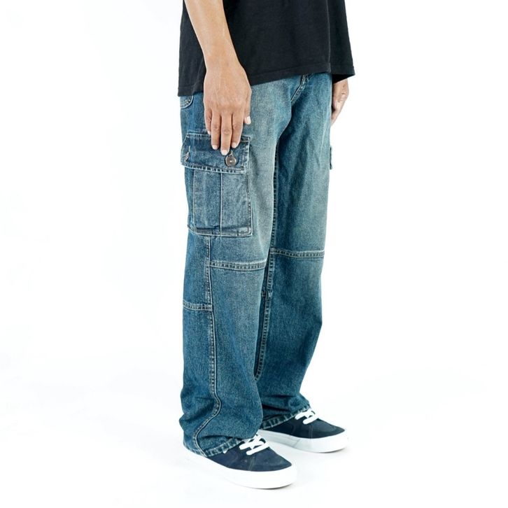 NEVERSUCK - JEANS CARGO BAGGY PANTS - RETROBLUE