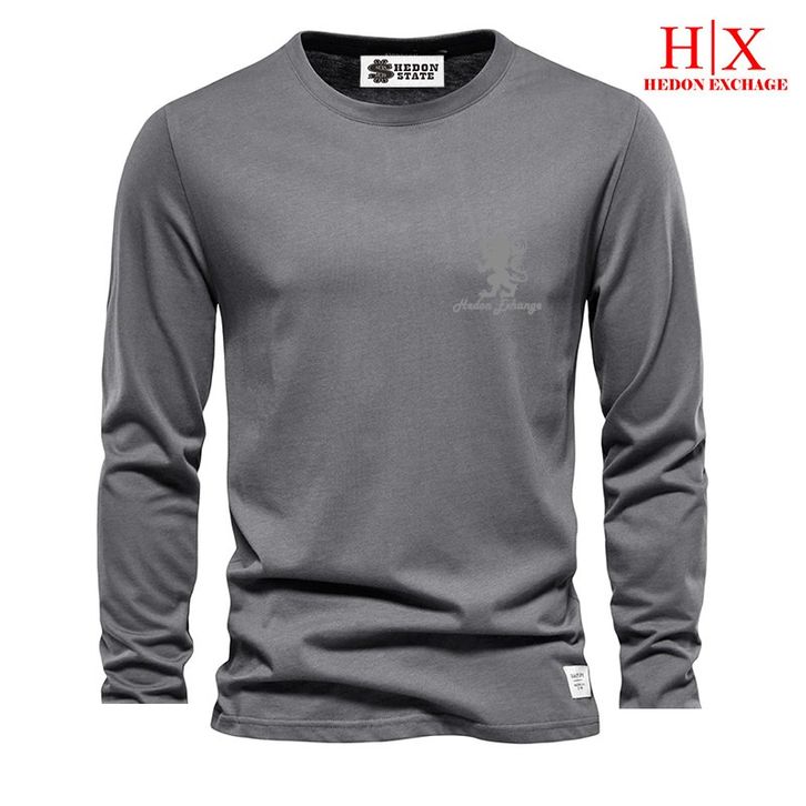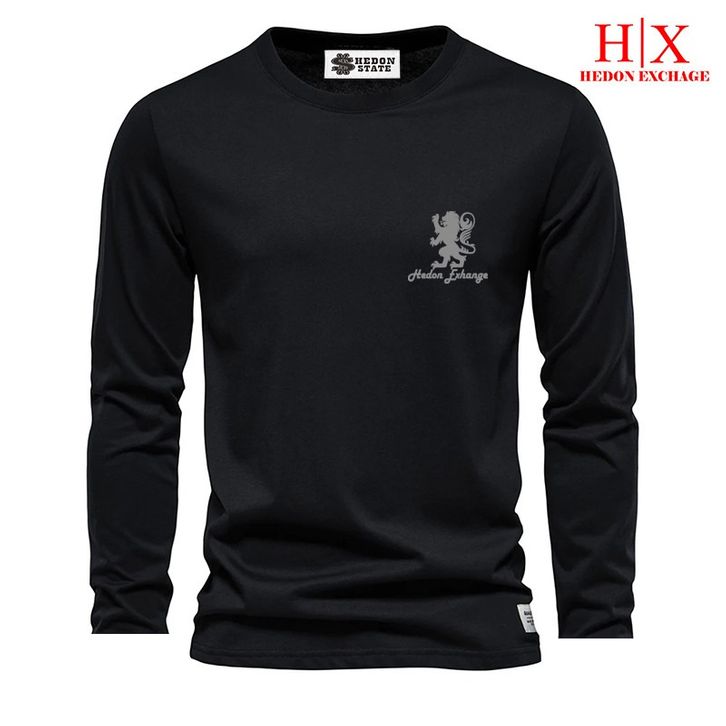 HEDON STATE Baju Kaos Panjang Distro Hdn Lion 3D Logo Silver 100% Cotton Pria Wanita Unisex Kekinian