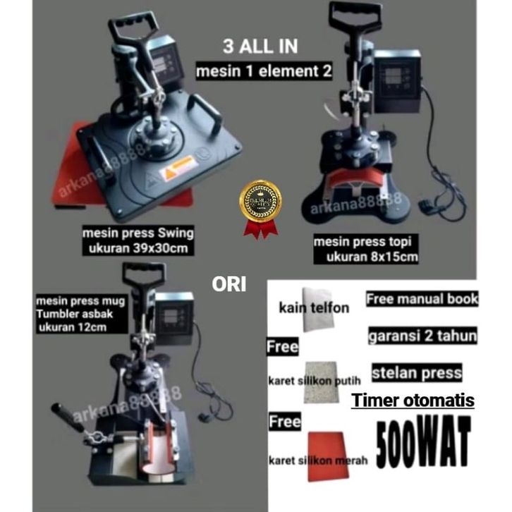 mesin press kaos mug topi 3 all in 500WAT
