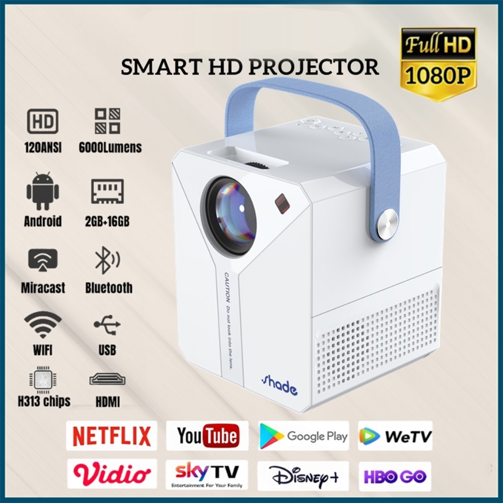 Proyektor TV T2mini 6000 Lumen 4K HD Bluetooth Smart Projector Mini hy300 epson eb x500 layar tancap smoon xgody hp