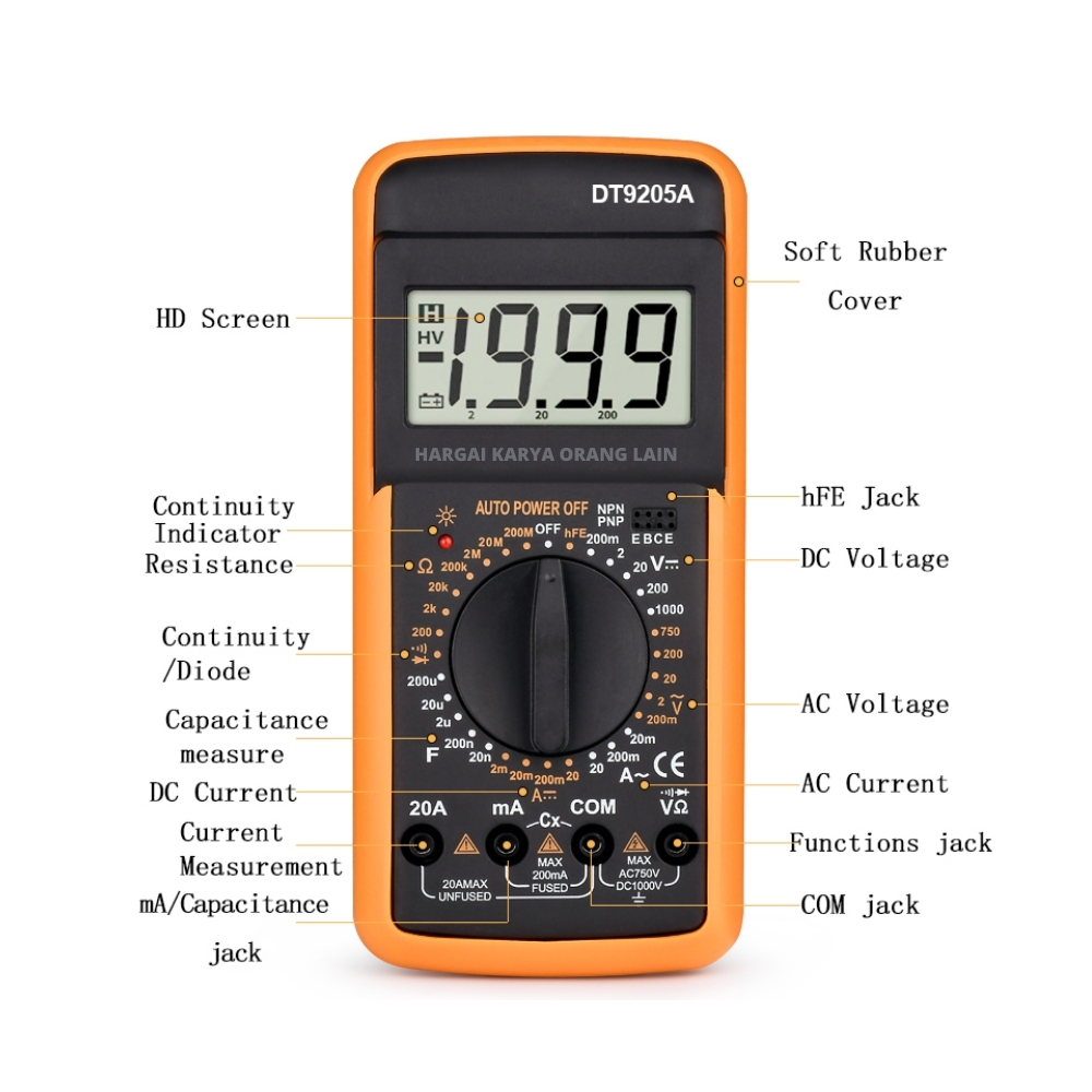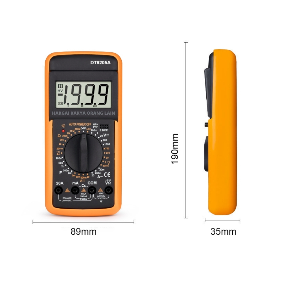 MULTITESTER DIGITAL MULTIMETER AVOMETER DT-9205A WINNER DT-9205A Multimeter Digital Paket Lengkap Dan Murah Digital Mult