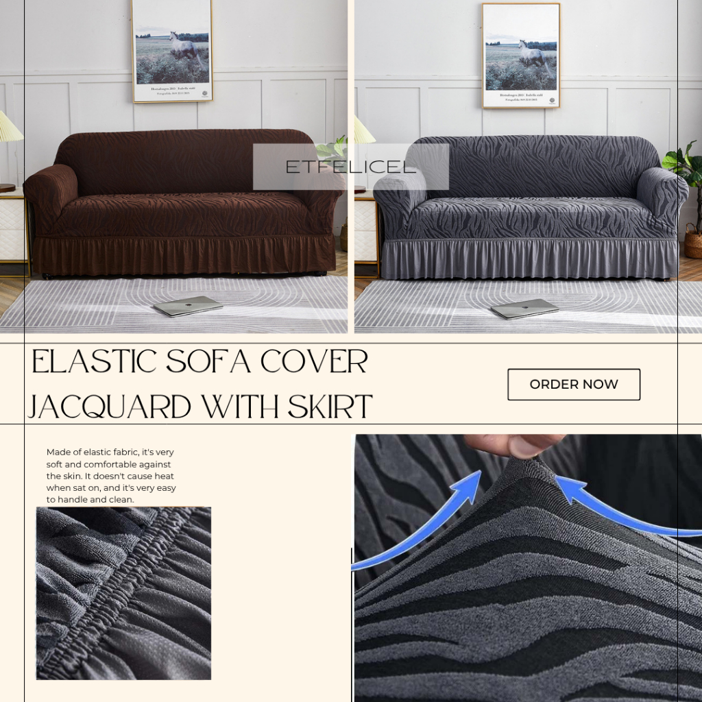 Sofa Cover Jacquard With Skirt/Sarung Alas Penutup Sofa Renda Elastis Corak Motif Abstract