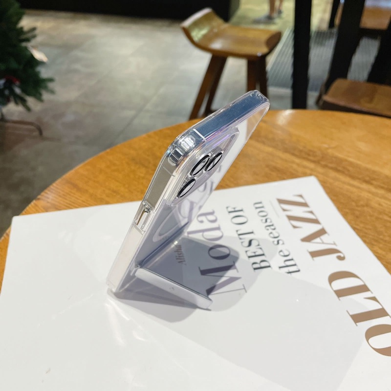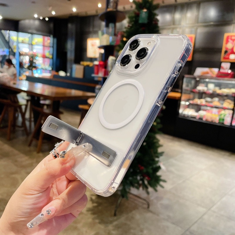 [Star] Case Bening + Stand MagSafe Casing Cover Standing iPhone 11 - 15 Pro Max Bahan Acylic