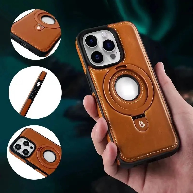 [Star] Case iPhone 12 / 13 / 14 / 15 / 16 / 17 Pro Max - Case Leather Metal Ring Stand MAGSAFE