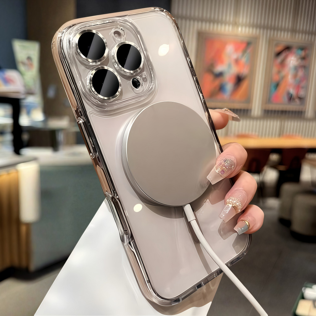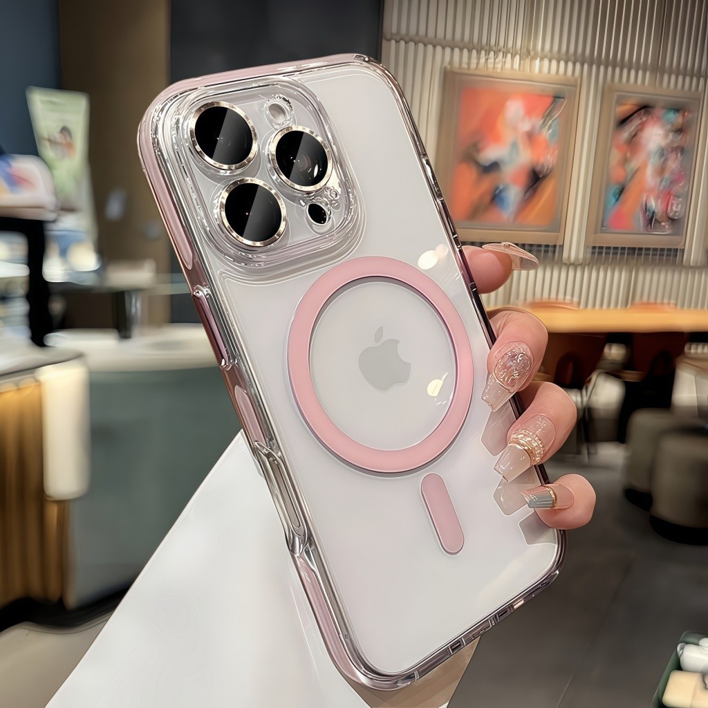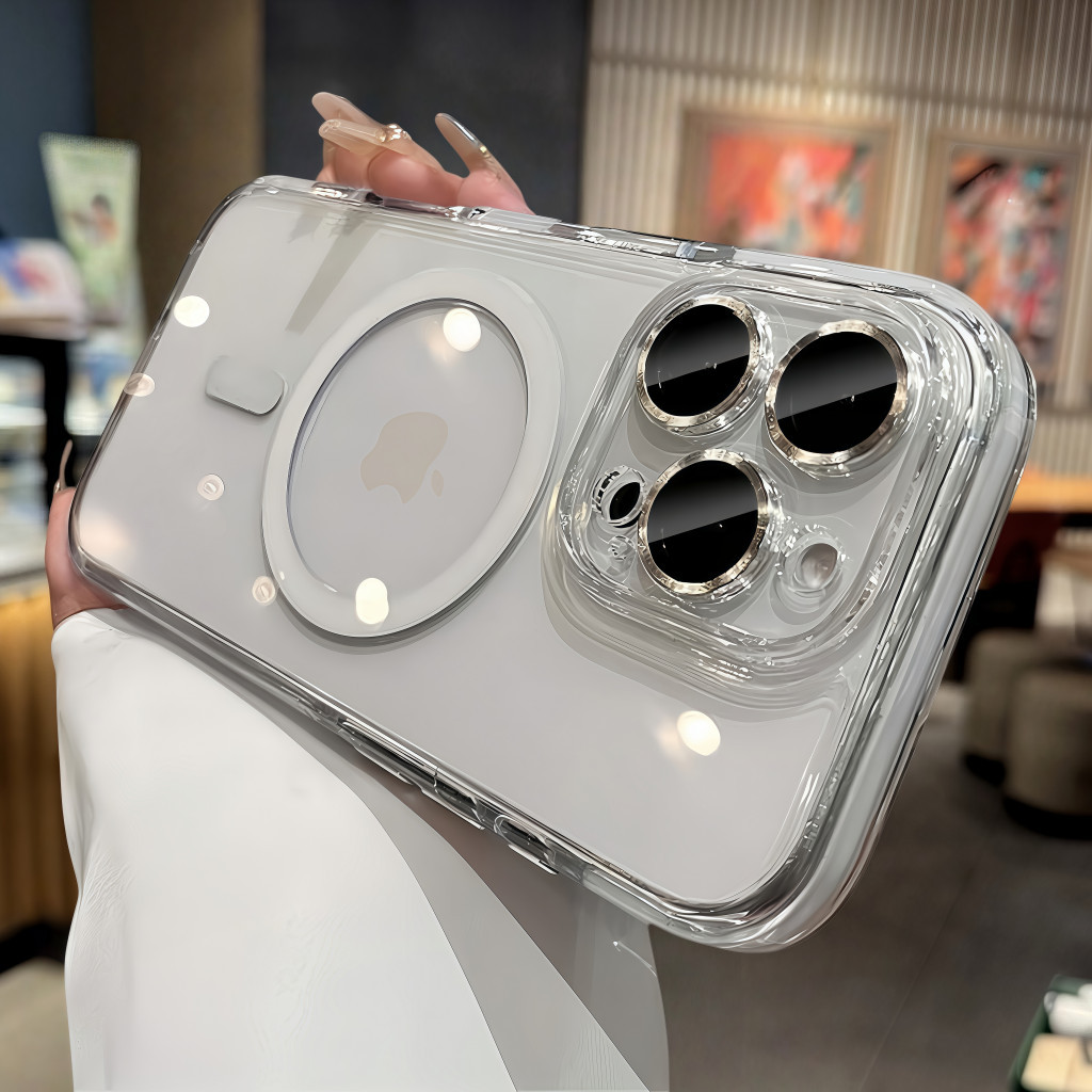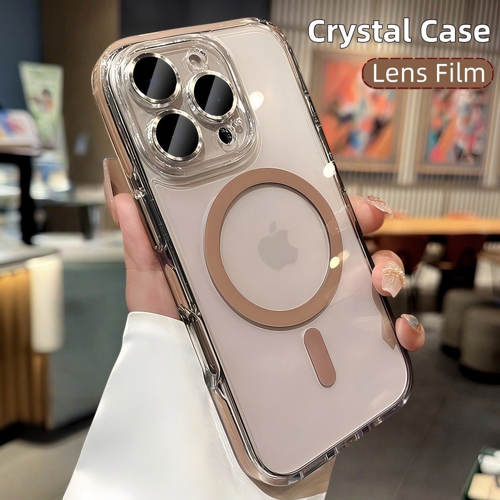 [Star] New Casing Transparan Crystal Clear Shield Magnetik untuk IPhone 16 Pro Max 13 14 15 Pro Max Anti-Selip Bumper C