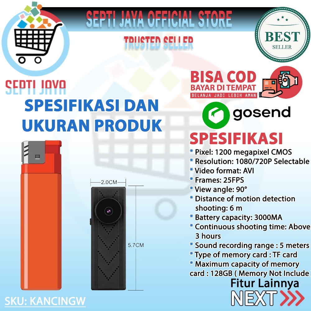 Kamera Spycam Kancing Pakaian Wifi Ip Camera Button Kamera Pengintai Bentuk Kancing Resolusi Full HD 1080P