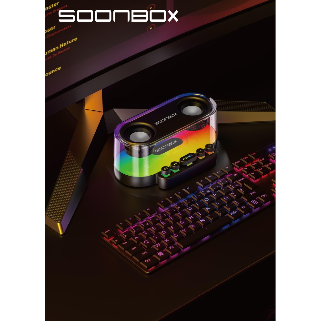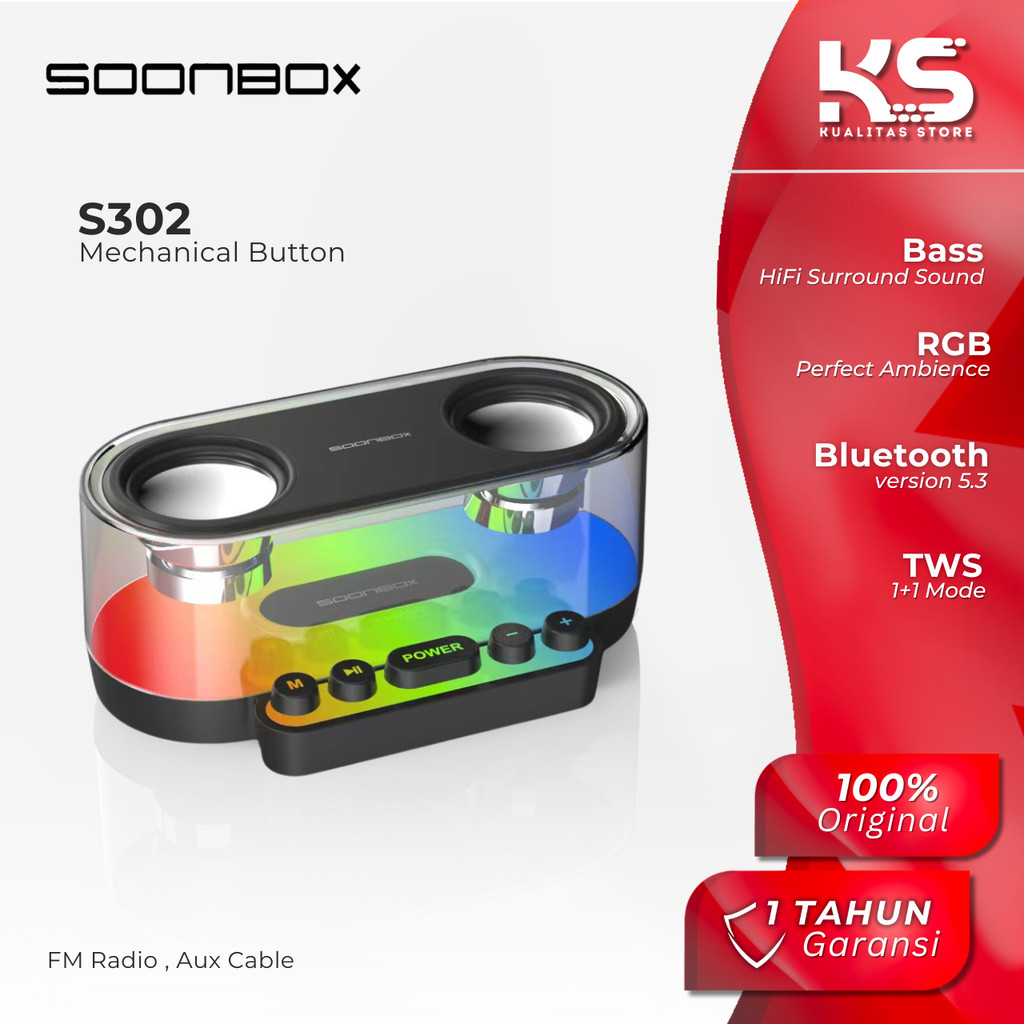 SOONBOX S302 Speaker Bluetooth 5.3 Portabel 20W Suara 360° LED Light Bass Sound + Mechanical Button
