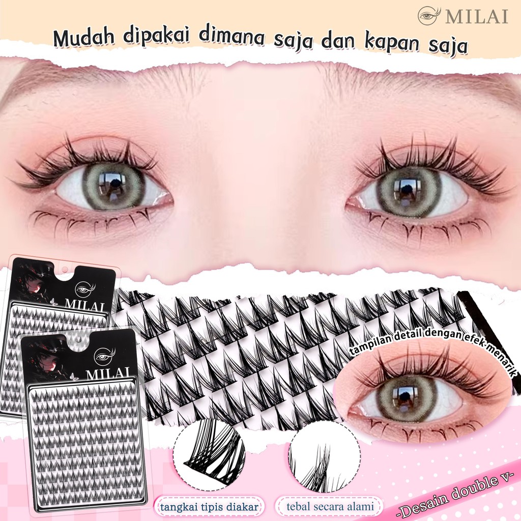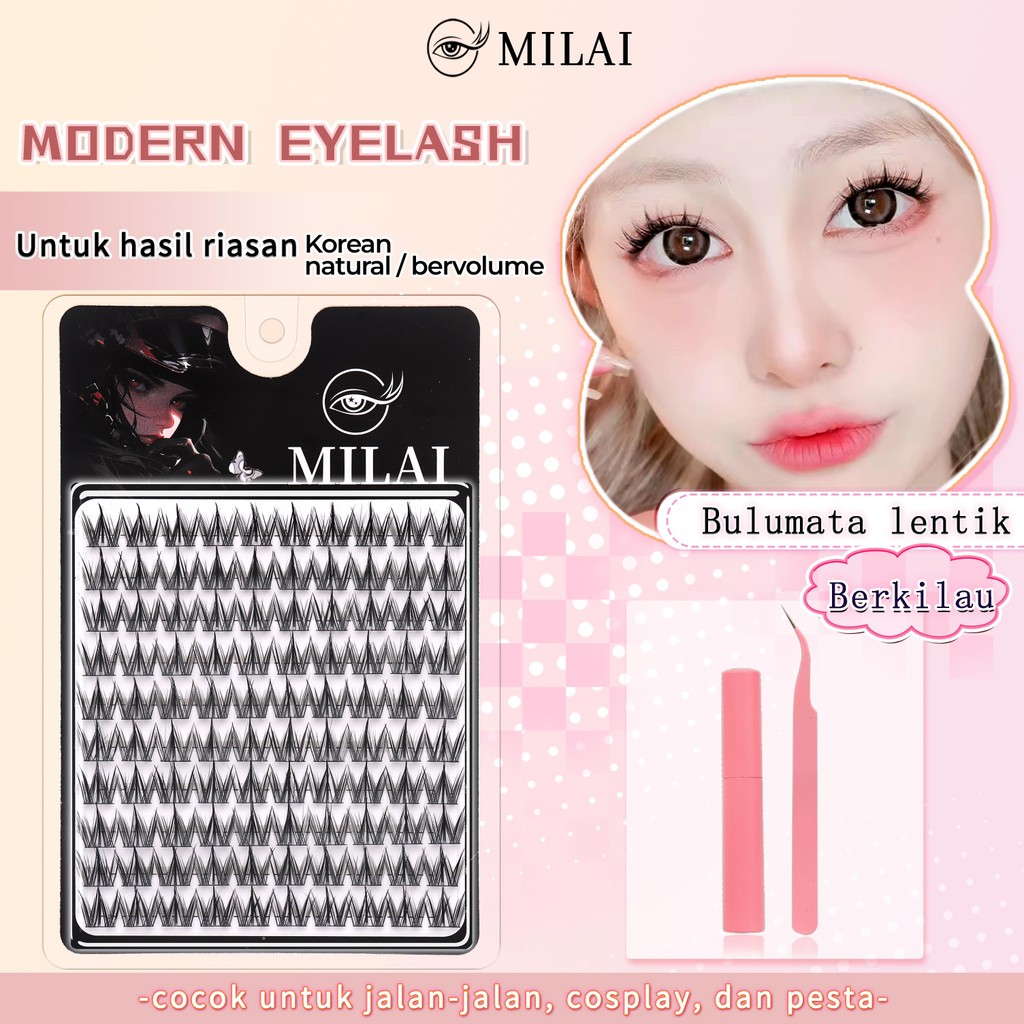 MILAI A91 Natural / Korean Bervolume Bulumata Palsu Serat Kapas Hitam Pekat 10-12mm Desain Eksklusif Teknologi 3D Kualitas
