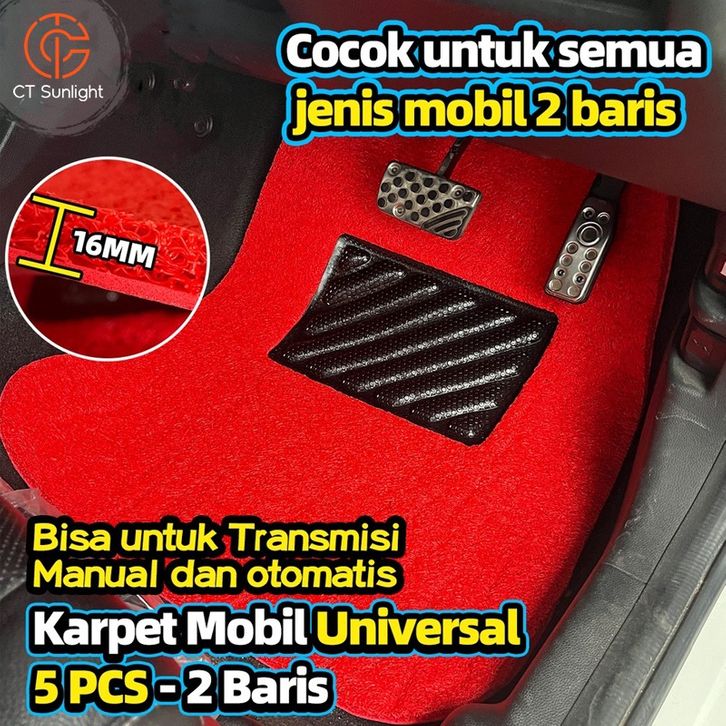 Karpet Mobil 5 Pcs 2 Baris Universal - Mie Bihun PVC - Ketebalan 16MM/ Universal bisa diaplikasikan ke semua mobil BY O
