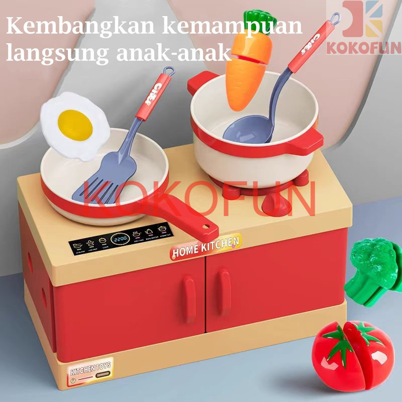 Mainan Masak Masakan Set Mainan Dapur Anak Bermain Rumah Mainan Cooking Set Kompor Menyala