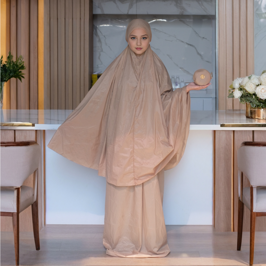 Mukena Sabilla Series Mukena Travel Mini Parasut Premium Polos Pouch Model 2in1 Resleting Dagu