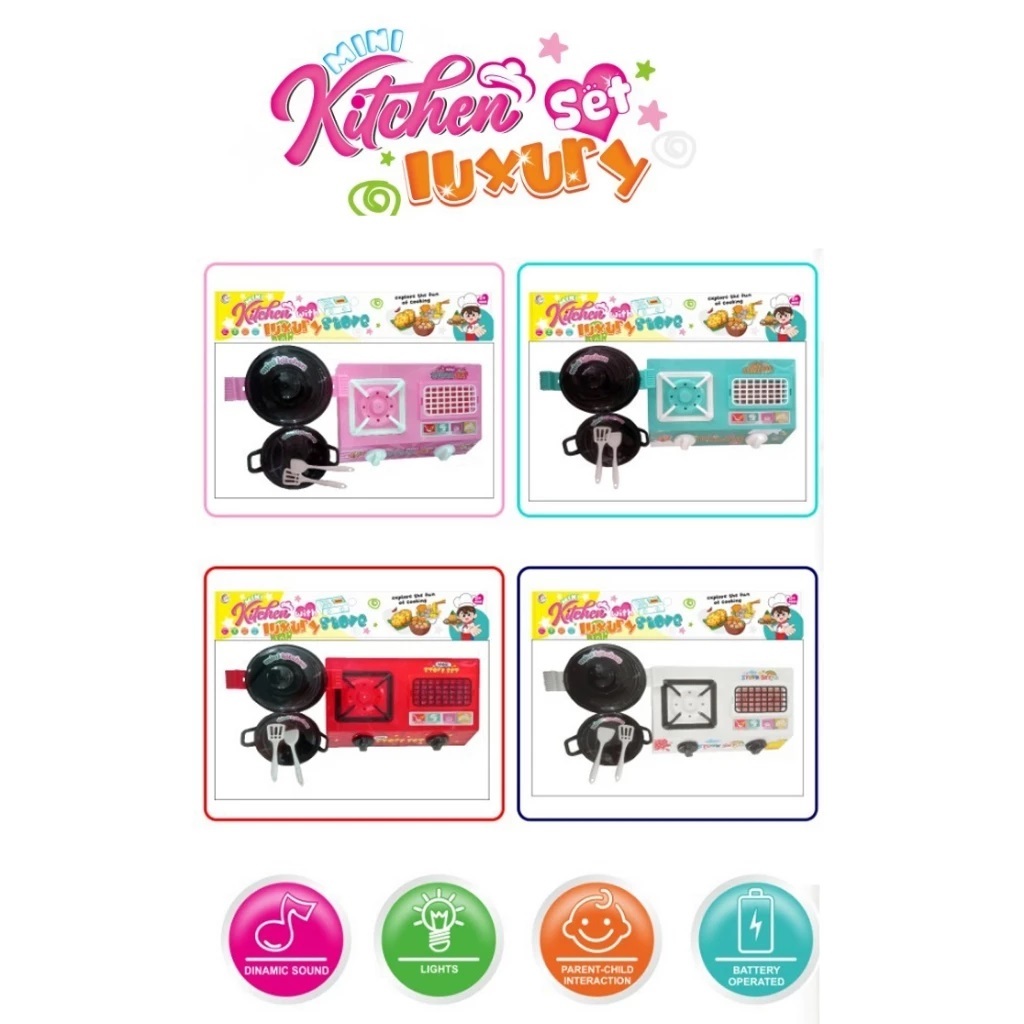 Bronsis - Mainan Anak Masak Masakan Kompor Kitchen Set Lampu Plus Sate Satean BBQ Wajan Panci