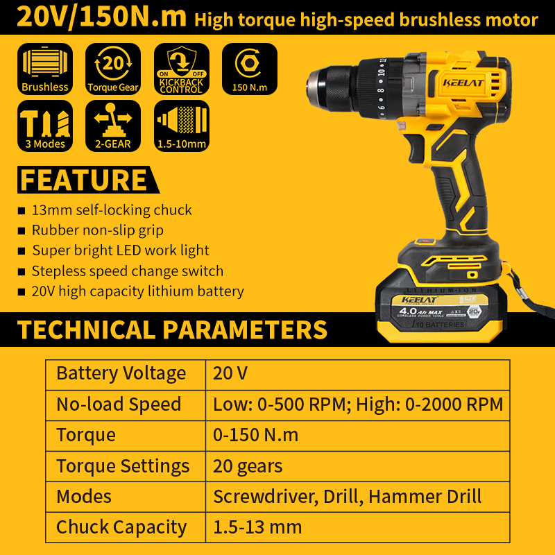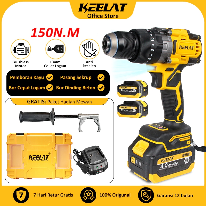 IMPACT KEELAT KCD014S 150NM BRUSHLESS MODERN WRENCH CORDLESS IMPEK MULTIFUNGSI 2 BATERAI MESIN BOR 13MM BESI KAYU BETON