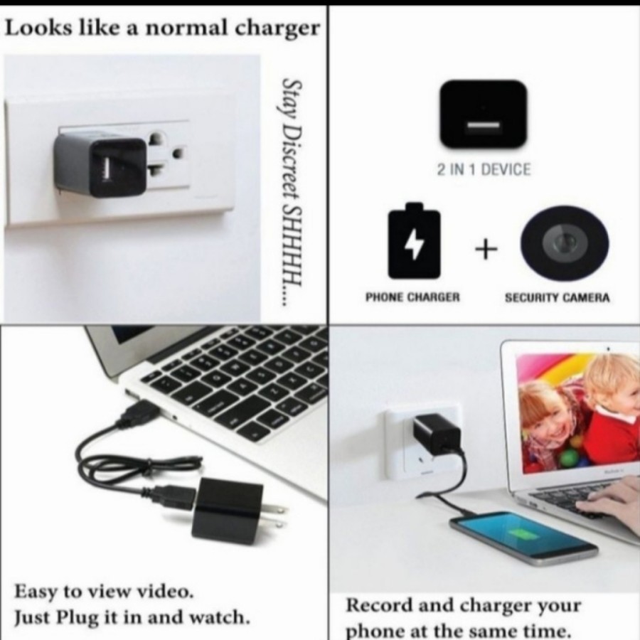 Camera Cctv Mini Spy Cam Charger USB Non Wifi 1080p Full HD 5MP