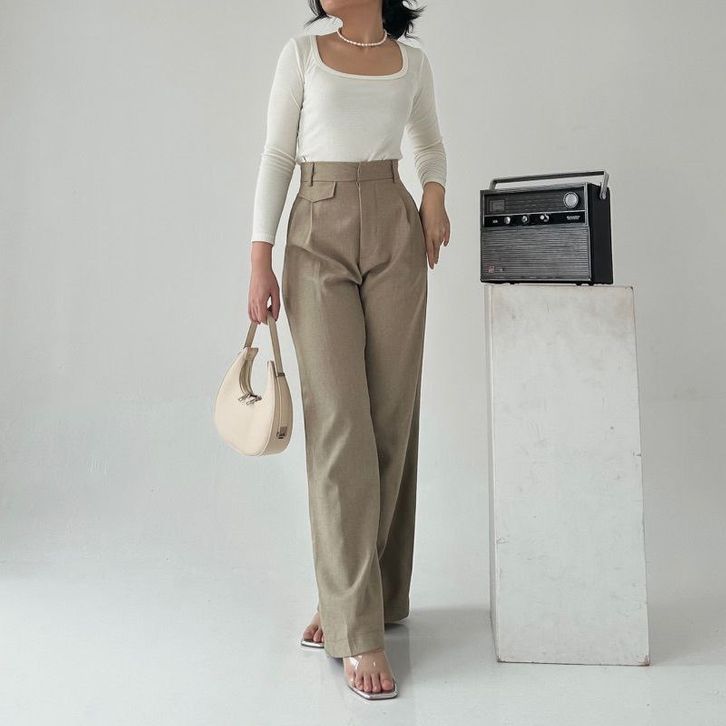 ORO PANTS SEMI WOL PREMIUM QC TOP Celana Basic Wanita Highwaist