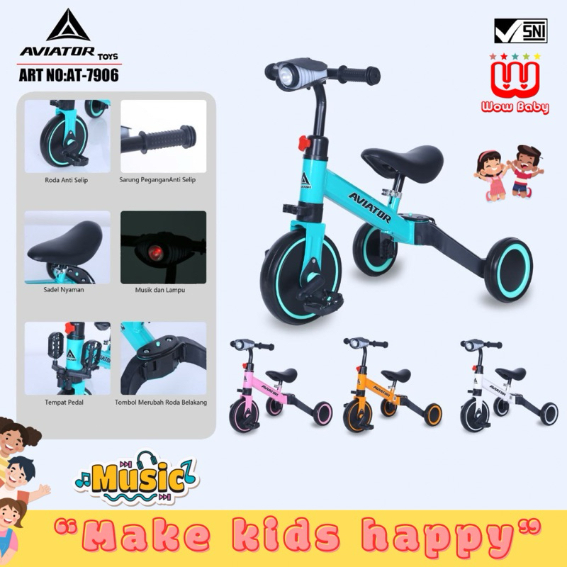 AVIATOR AT-7906 ( 3 in 1 ) BALANCE BIKE Sepeda Anak Roda Tiga