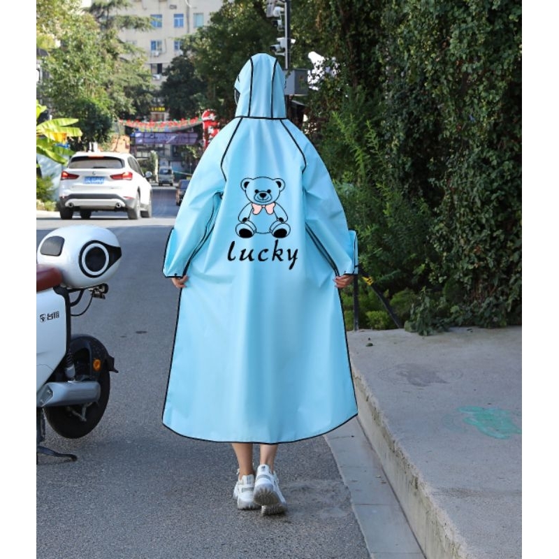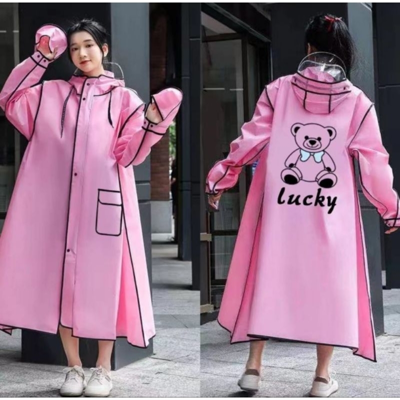 Jas Hujan Terusan Dewasa Zipper Korea Style Raincoat Mantel Hujan Zipper Faceshield Pria Wanita Cakep