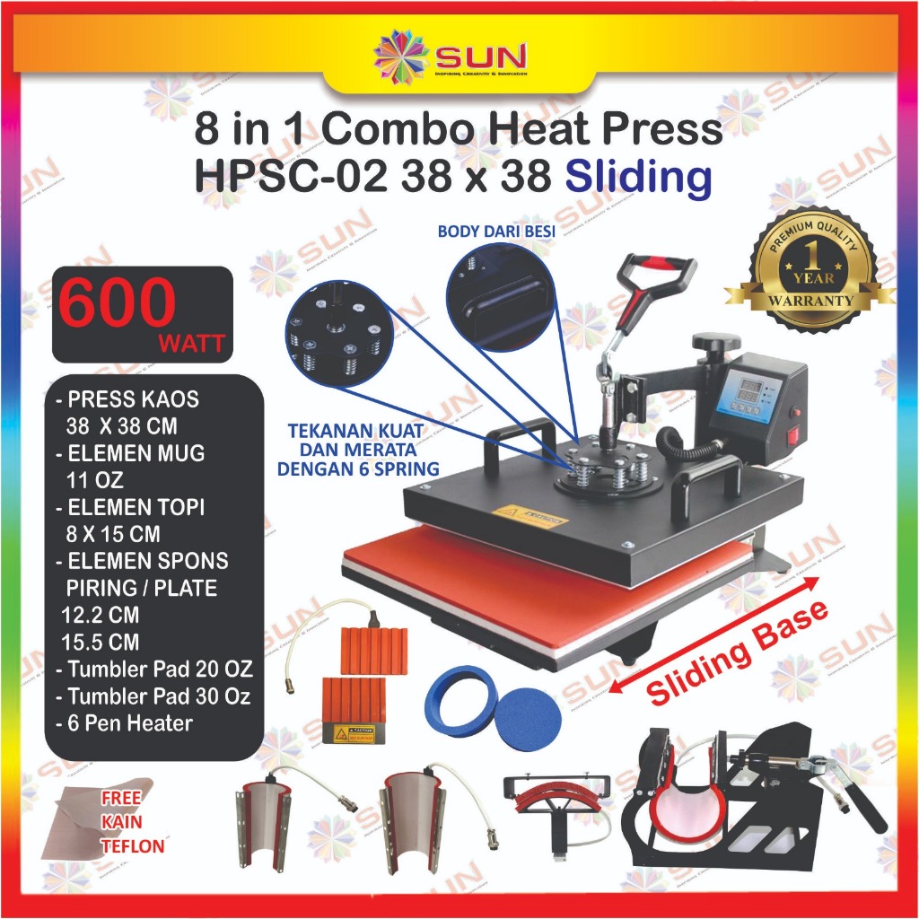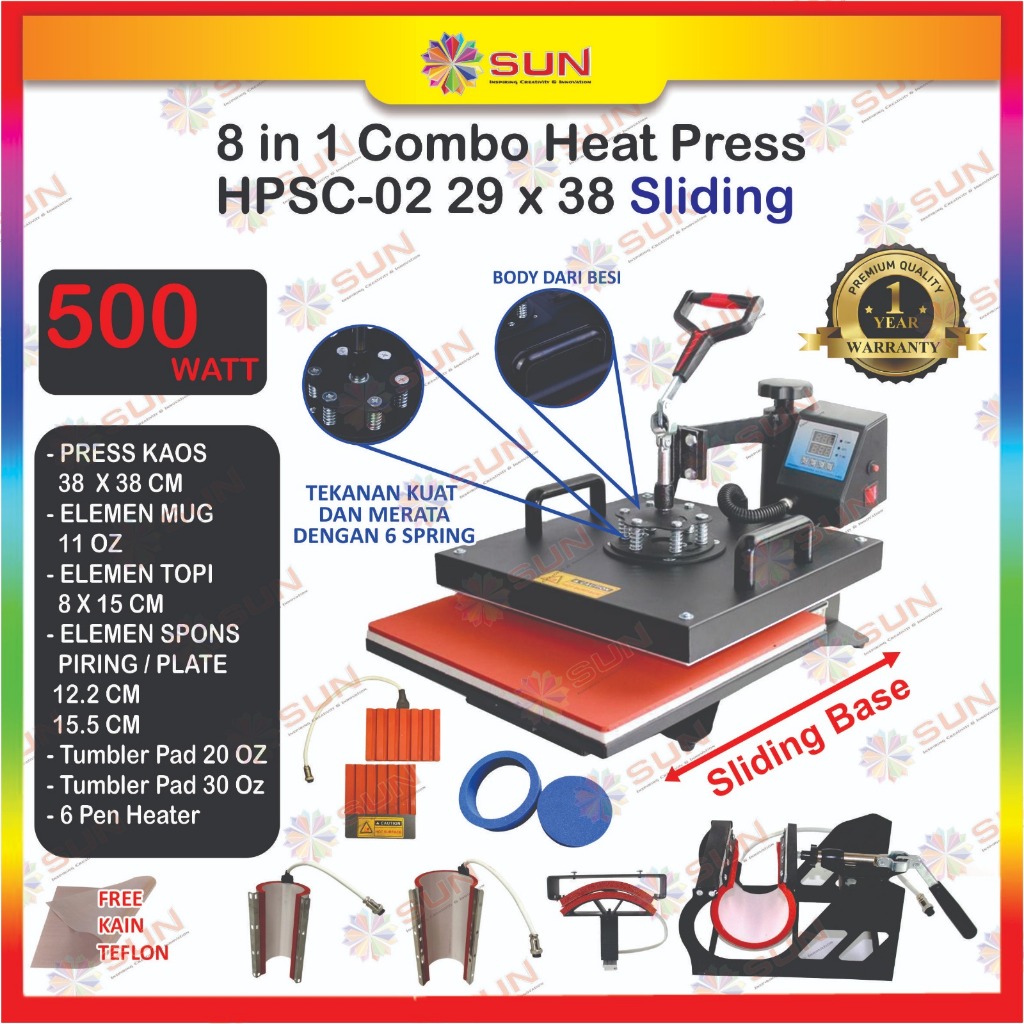 [Mall] Mesin Press Kaos High Pressure 500 watt 23x30/ 29x38 /38 x 38 Swing/Putar/Combo untuk Sablon Kaos,Bag,Puzzle,Plat