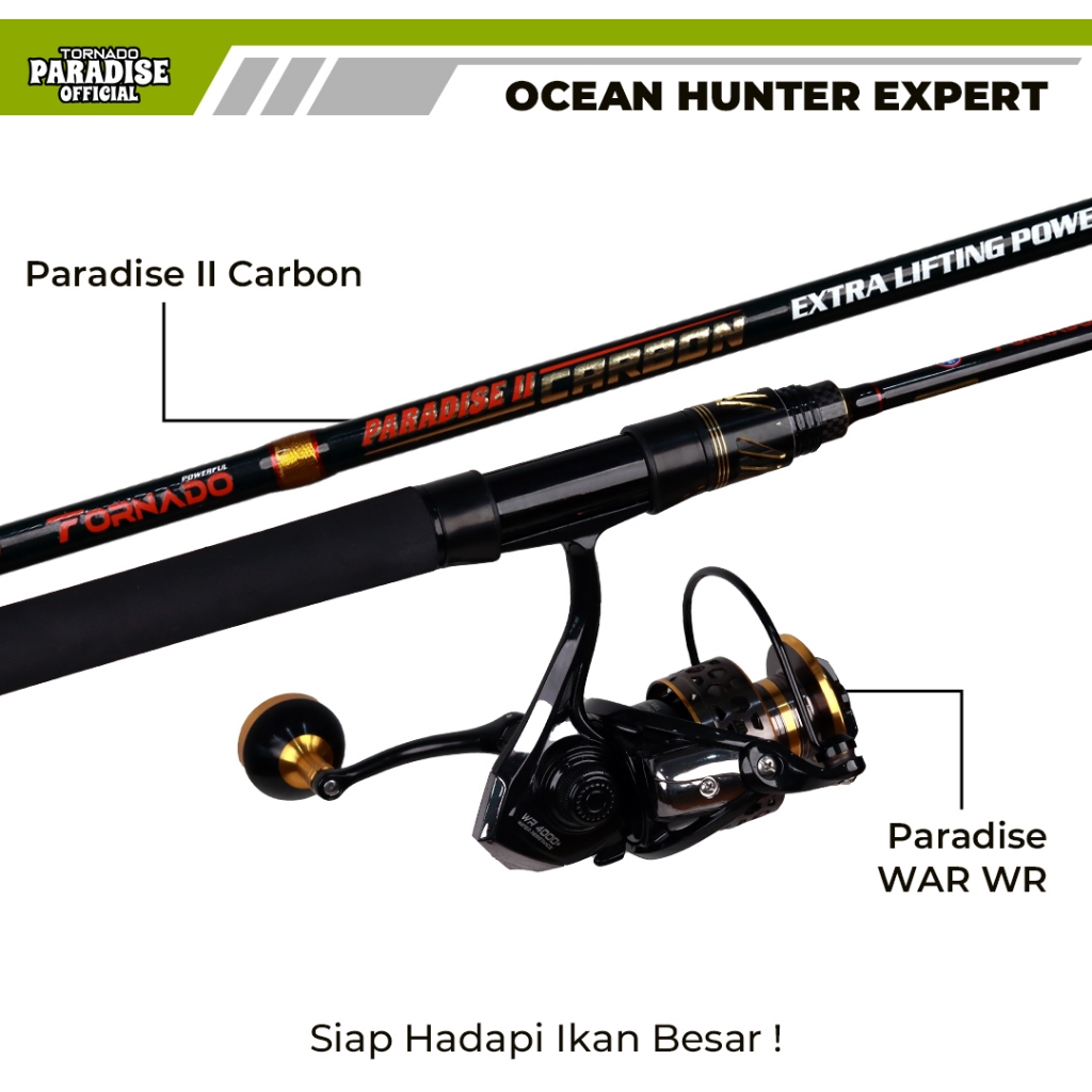 SET OCEAN HUNTER EXPERT JORAN REEL LAUT TERKUAT Paradise II Carbon + Reel WR 6000 | Drag 15KG Cocok GT Tenggiri