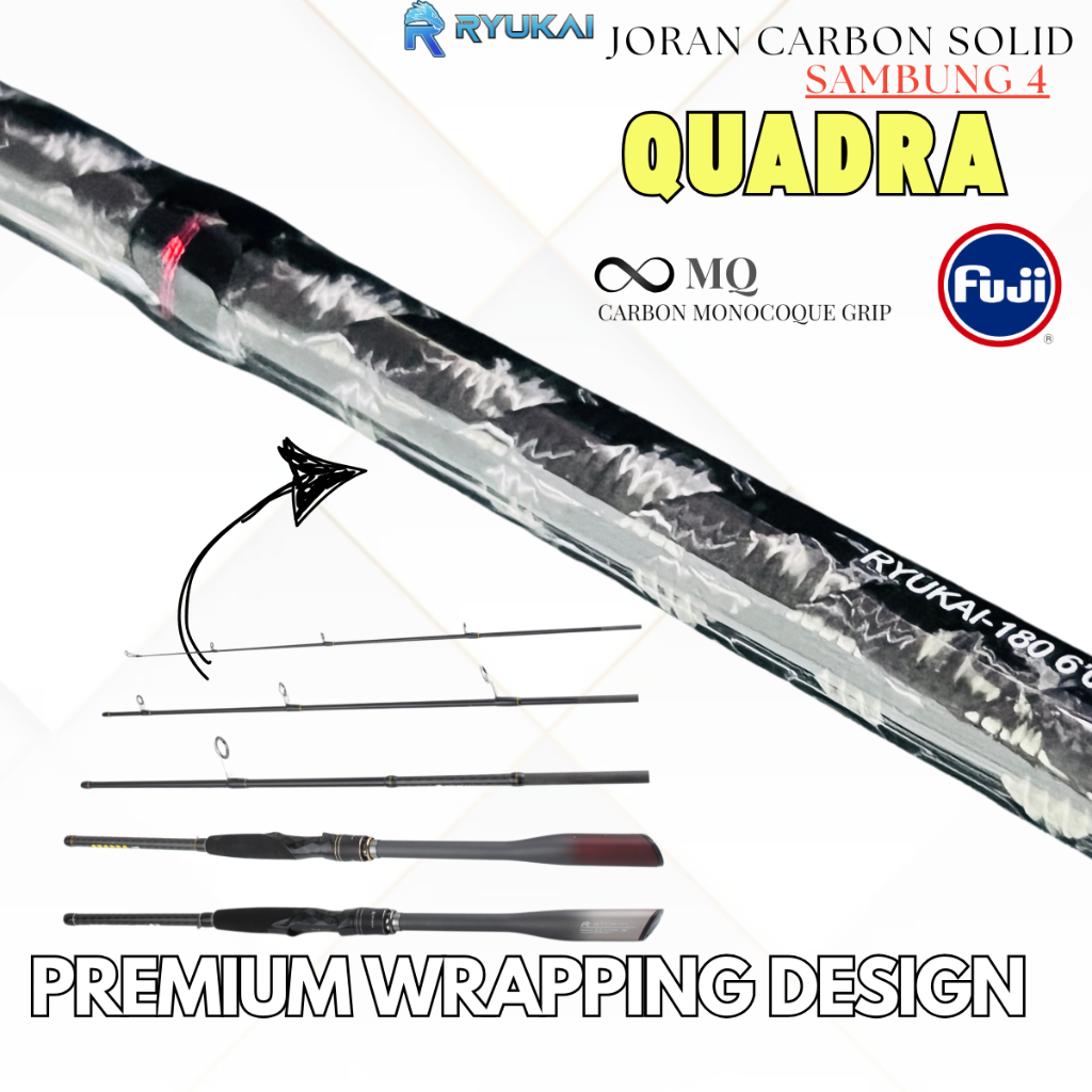 Joran Pancing Carbon Solid Fuji Sambung 4 Portable 8-17 lbs 198 210 cm Ryukai Quadra