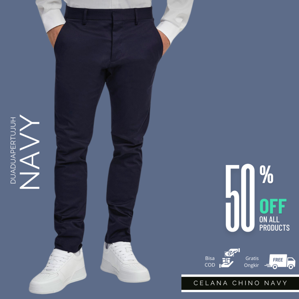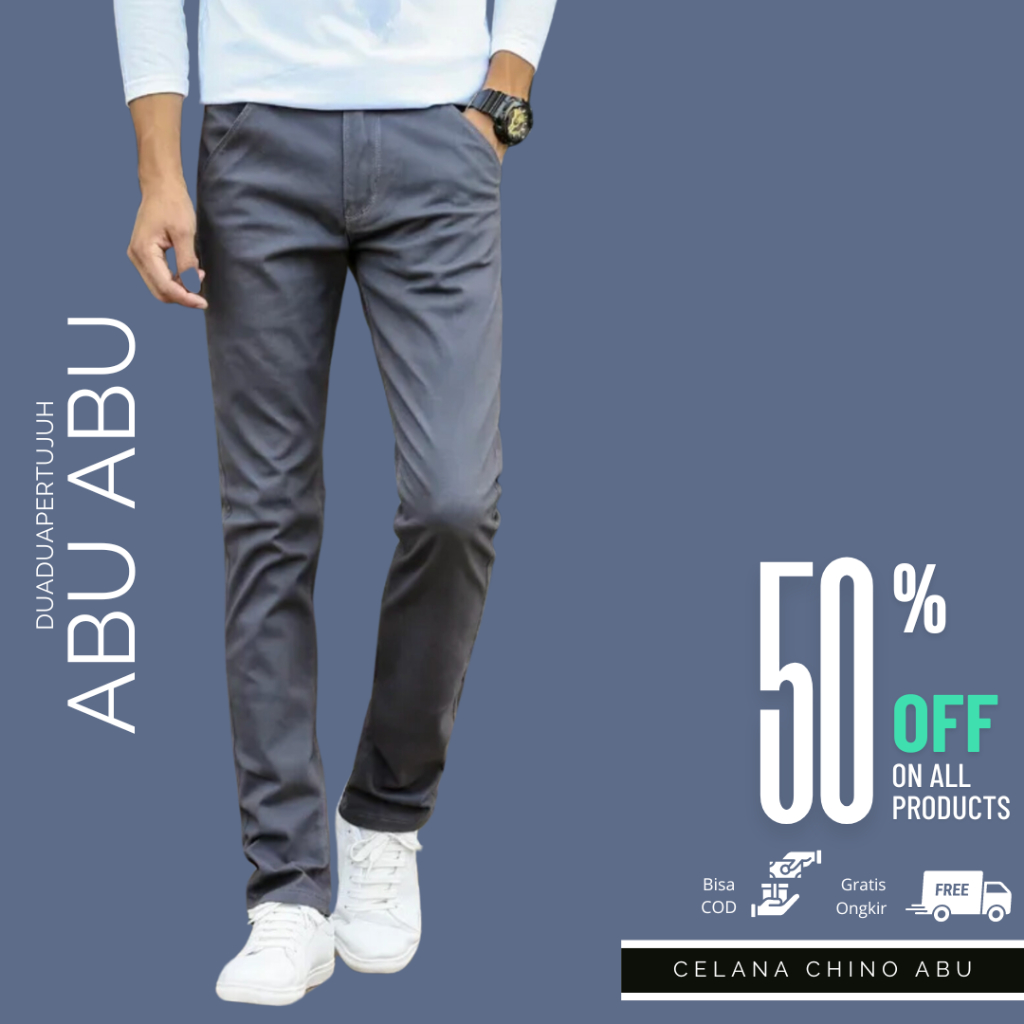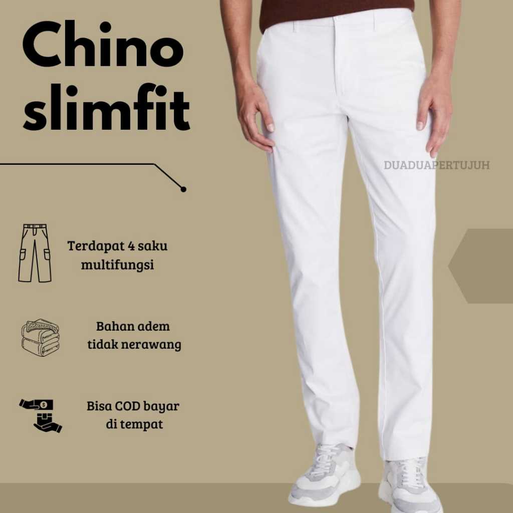 Duaduapertujuh - Celana Chino Panjang Pria Panjang 100cm Putih Slimfit - Celana Panjang Pria - Celana Chinos