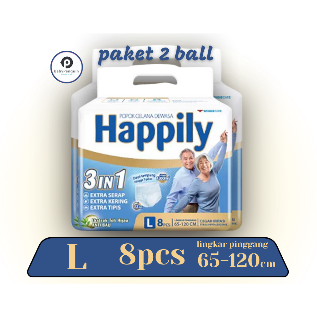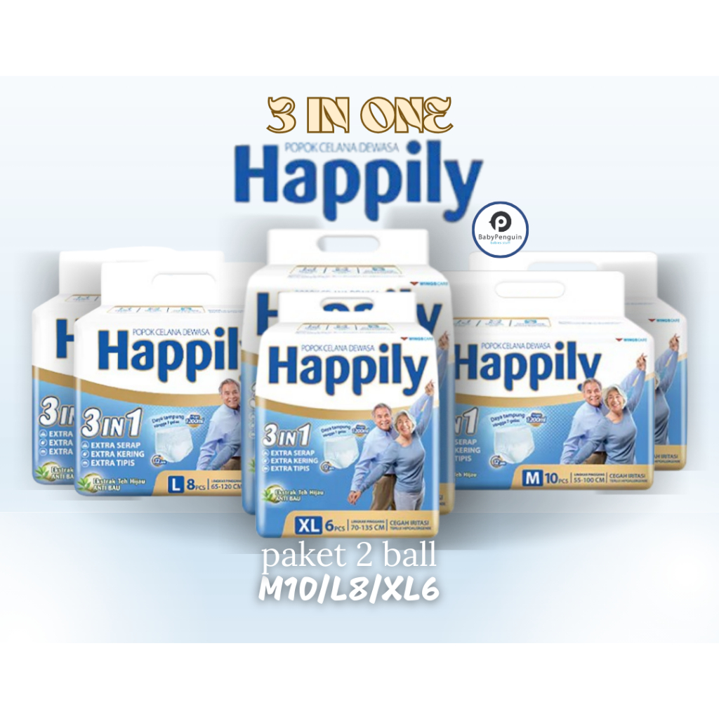 PAMPERS DEWASA HAPPILY TIPE CELANA PAKET 2 BALL UKURAN M10 L8 XL6 PAMPERS ORANG TUA MURAH